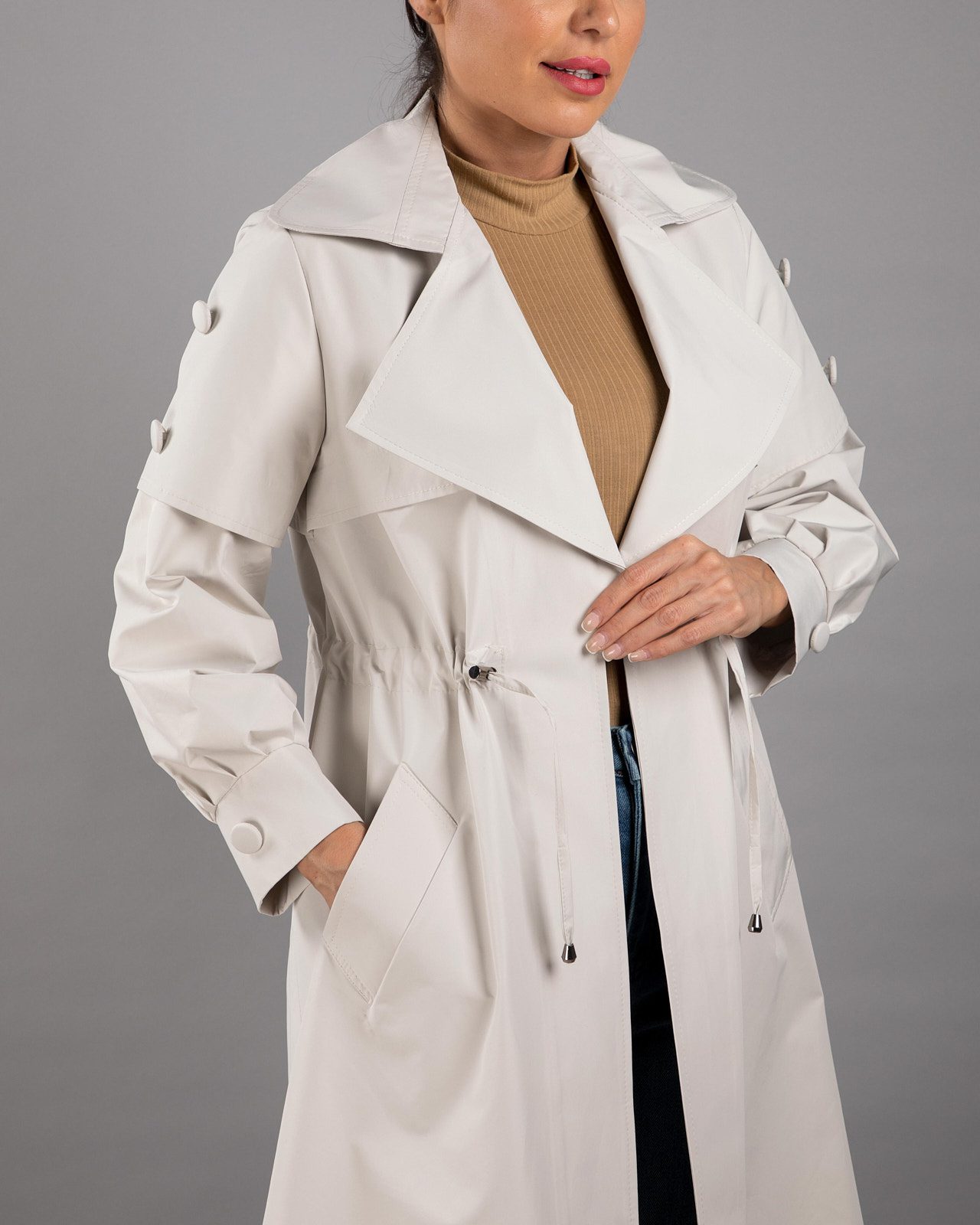 یقه‌های برگردان، مدل‌های کلوش و برخی طراحی‌های خاص مانند پانچو، بسته به فرم بدن، می‌توانند استایل متعادل‌تری ایجاد کنند.