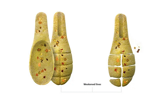 قاشق‌های ساخته‌شده از نشاسته ذرت و ادویه: این قاشق‌ها به غذا طعمی خاص می‌دهند و برای مصرف سوپ یا خورشت مناسب هستند. این قاشق‌ها بعد از استفاده، به‌طور کامل تجزیه می‌شوند و آسیبی به محیط زیست نمی‌زنند.